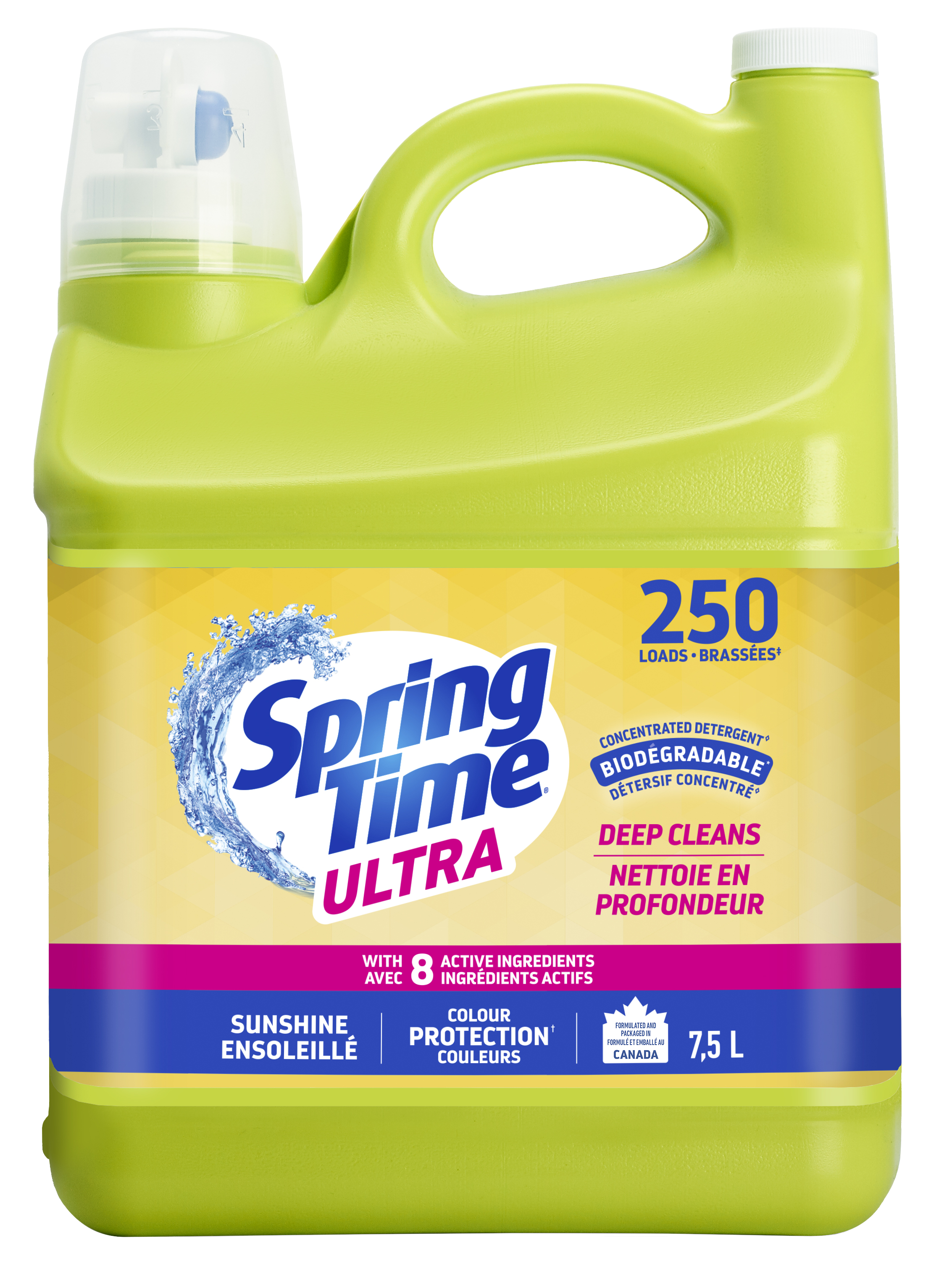 Le détersif à lessive Springtime® Ultra prend soin de vos vêtements et du monde qui nous entoure en alliant efficacité et respect de l’environnement.